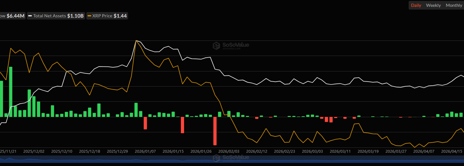 Consequently, the spot XRP ETFs’ cumulative net inflows surged to $1.29 billion, according to data from SoSoValue, the highest level recorded to date. Investors have deployed $81.63 million in April alone into the funds, making it the best monthly performance since December.